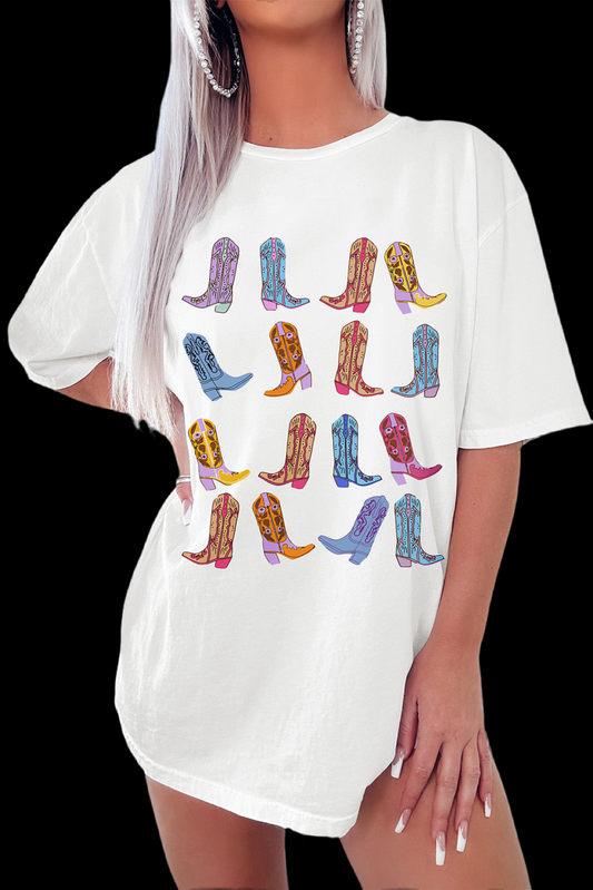 V Legend Cozy Western Cowgirl Boots Graphic Crewneck Tunic T Shirt