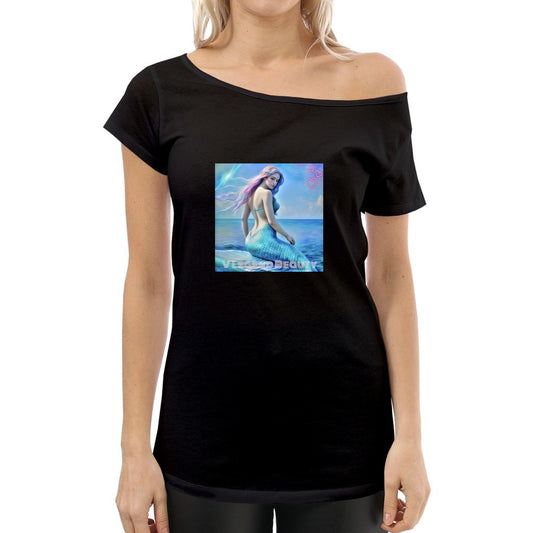 White & Black Tee Mermaid Women's Off The Shoulder Tops Shirt