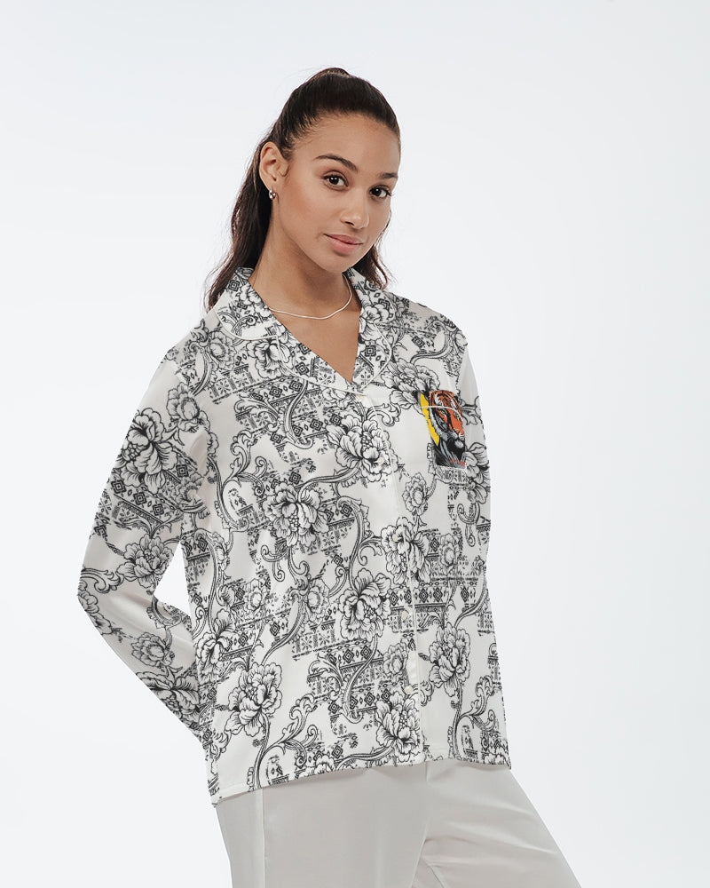 About The ArtV Legend Make it Happen V Legend Make it Happen is our logos and wish everyone become Victors and Legends! Product DetailsIndulge in comfort and sophistication with our Women's Satin Long Sleeve Pajama Top, made from soft, 100% polyester satin and accented with classic piping details.