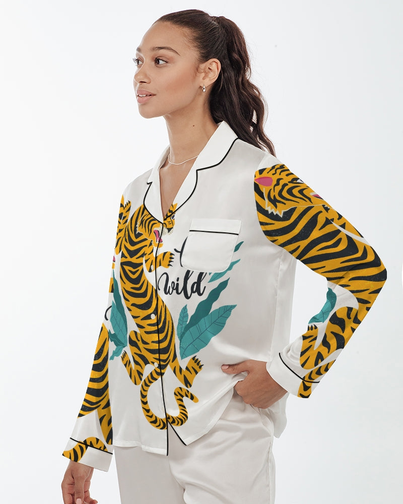 V Legend Tiger Images Women's Satin Long Sleeve Pajama Top
